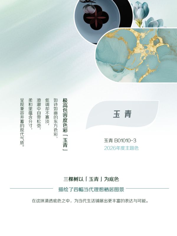 三棵树以「玉青」串联四大主题色盘 引领东方美学色彩新潮流