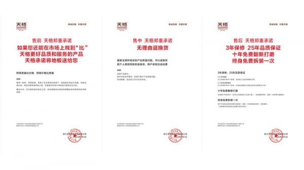 农村自建房往往是一项倾注心血与积蓄的重大投资,其装修材料的耐用性和售后保障直接关系到未来的居住体验。尤其像地板这类购买成本高、使用周期长的大宗耐用消费品,更需要选择具有完善售后保障的大品牌,来有效避免后续维护无门的问题。一直以来,天格都秉承“您选择,我负责”的服务理念,为众多用户构筑了坚实的安心屏障。其涵盖售前-售中-售后的《五大承诺》保障体系,包含3年保修、25年质保、10年免费翻新打磨、终身免费拆装一次等清晰、硬核、全面的服务条款,正是对用户长期价值保障的郑重契约。这份品牌给予用户的安心感,恰恰与回农村“躺平”、追求安稳长久生活的价值观不谋而合。