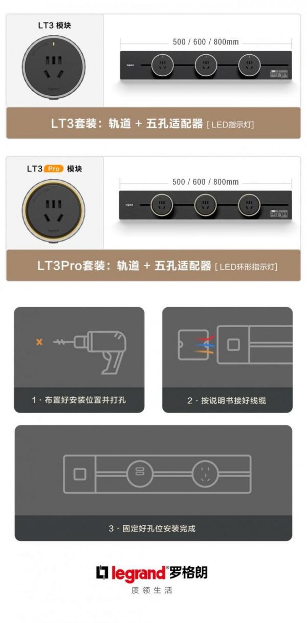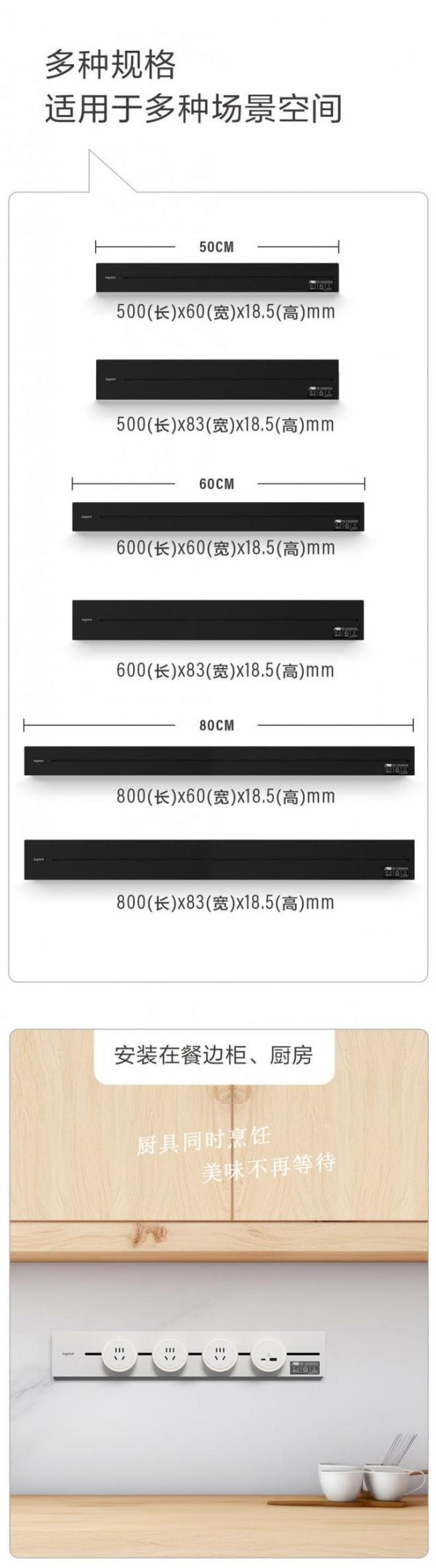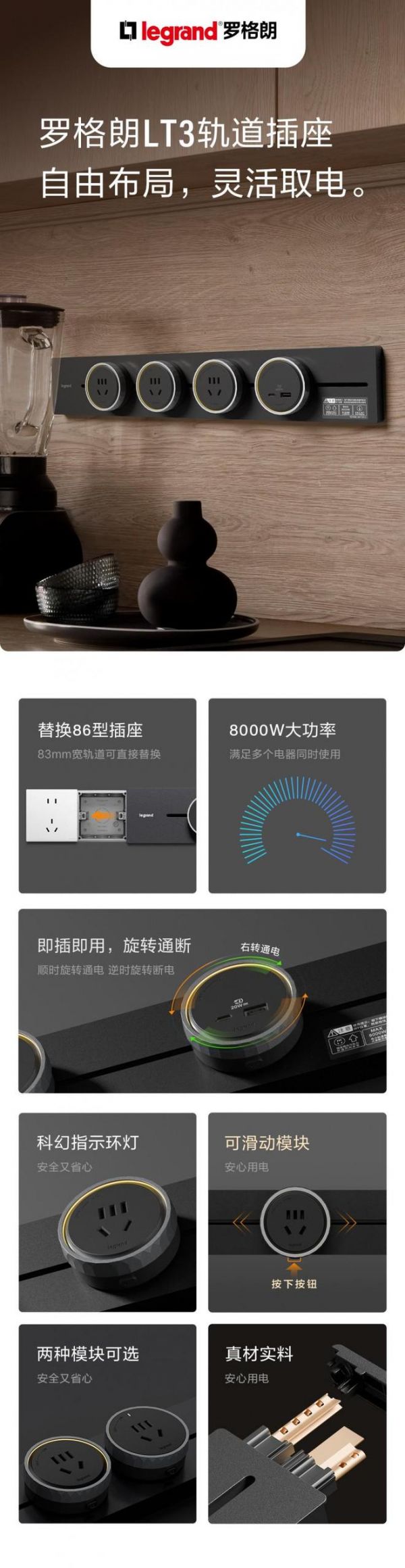 总之,这款罗格朗轨道插座不仅可以解决消费者灵活用电的痛点,而且能够提高家庭用电效率,让家居空间更美观简洁和安全可靠。针对不同用电场景空间,罗格朗轨道插座提供50cm、60cm、80cm规格可选,推荐厨房、餐边柜、客厅、书房等场景安装,让用电更舒适便捷。