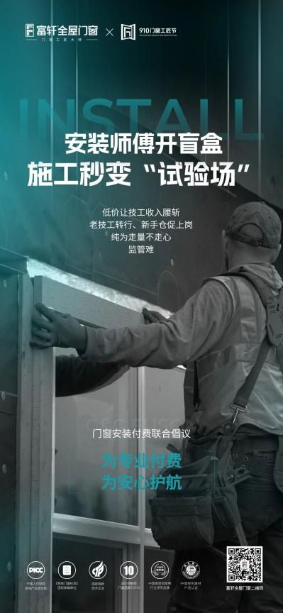 针对门窗行业长期存在的“重产品、轻服务”问题,富轩全屋门窗联合行业协会、行业专家、各大媒体等,将在9月10日第二届910门窗工匠节上发起“门窗安装付费联合倡议”,推动门窗产品和服务分离,倡导“为专业付费”的消费理念。