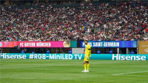 事实上,今年6月的2025FIFA世俱杯赛场早已留下海信RGB-Mini LED的亮眼印记 ——“Hisense RGB-Mini LED TV”围挡广告强势刷屏,成为赛场外的一道科技风景线。全球首款量产的RGB-Mini LED电视UX,凭借超高色彩、超高亮度、超广视角、超低能耗等优势,为观众精准还原世俱杯赛场上每一处细腻色彩、捕捉每一次高速对抗的流畅细节,成为世俱杯赛场的 “视觉担当”。