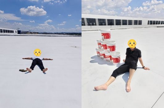 厂房老板最终采用科顺润涂R303反射隔热防水全面通刷厂房屋面,施工后的屋面太阳光反射比显著提升,表面温度明显降低!老板直言:“在屋面直接赤脚走路,甚至躺平都不觉得滚烫,神奇!”现在不仅改善了工人的作业环境,更大幅减少了能源消耗,工人们都表示现在的厂房比以前凉快多了!
