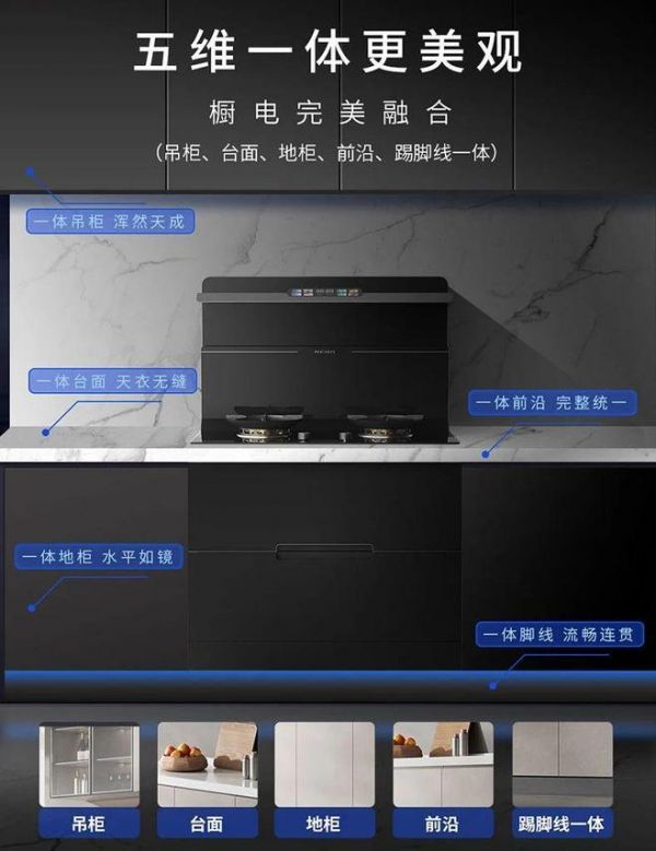 2024年,为满足用户对“一体化厨房”的需求,美大再次创新推出下排集成烹饪中心,对传统集成灶产品进行全面升级。“五维一体”设计理念将吊柜、台面、地柜、前沿、踢脚线进行整体化搭配,通过全嵌入式设计使厨电功能模块与橱柜完美契合,在最大化利用空间的同时,满足用户对美观与实用的双重追求。