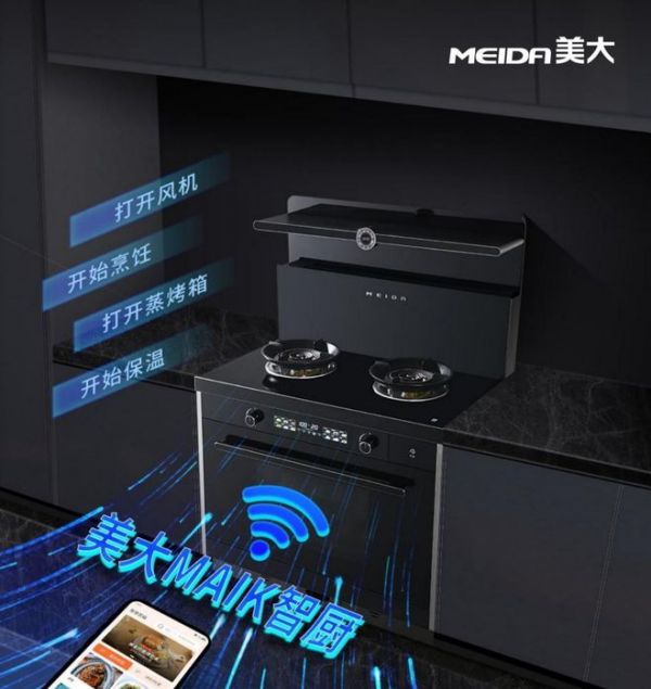2022年,美大推出新境界蒸烤双腔集成灶,创新性地将左烤炸(39L)与右蒸炖(51L)独立分区,配合3D变频温控技术,实现多种烹饪模式,成为行业新的技术标杆。