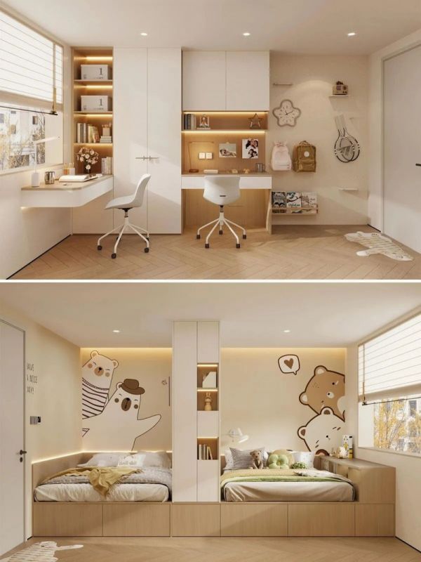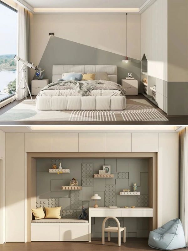 学习、娱乐、休息区域各司其职,通过一体化设计与灵活布局,满足孩子的多元需求。