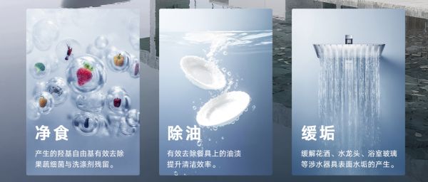超细气泡能深入传统清洁难以触及的细微之处,其表面电荷可带走油脂与细菌,羟基自由基还能有效去除果蔬上的细菌与洗涤剂残留,让入口食材更安心;清洗餐具时,它能有效去除餐具上的油渍同时提升清洁效率,减轻用户家务负担。更贴心的是,超细气泡还能缓解花洒、水龙头、浴室玻璃等涉水器具的水垢滋生,减少定期清理水垢的麻烦。沐浴时,这些超细气泡能深入毛孔深处,附着在皮肤内部深层,洗完澡后肌肤含水量明显提升,告别干燥紧绷;同时还能清洁皮肤表面细菌,深层去除毛孔油脂,每次沐浴都像一场温和的肌肤SPA。