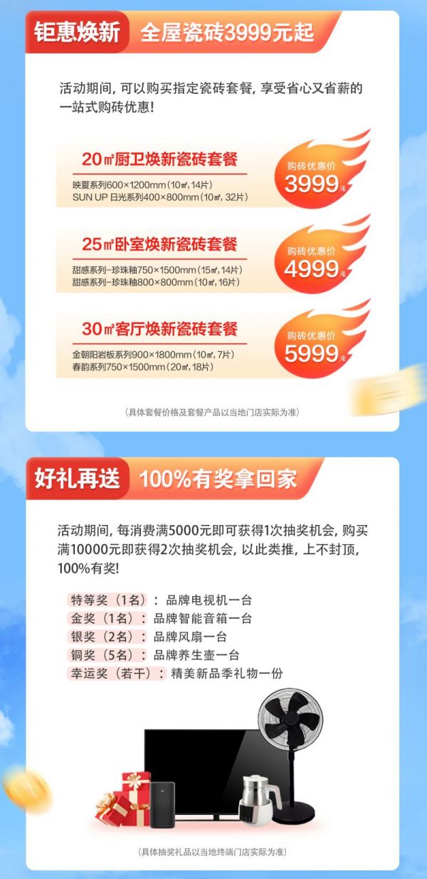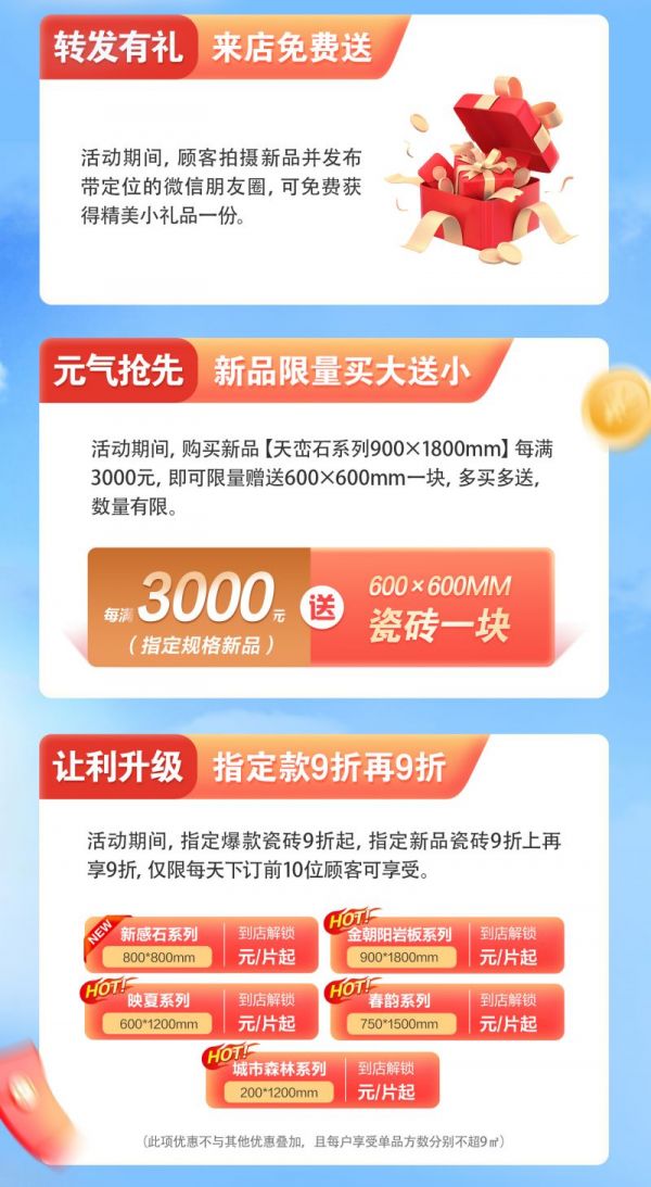 元气新品礼 焕新抢先惠!金朝阳瓷砖新品季促销 新款瓷砖买大送小!