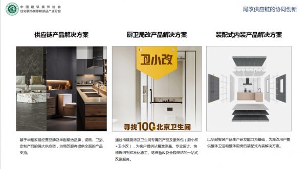 华耐家居作为国内领先的家居服务品牌领军企业,凭借深厚的行业积淀,已构建起覆盖产品、配送以及交付环节的核心能力,为局改业务提供有力支撑。华耐家居经营品牌及自营品牌华耐星选,覆盖瓷砖、卫浴、定制、软装等品类,为局装局改提供从品质到价格更加丰富的供应链产品解决方案、厨卫局改产品解决方案,并且以华耐智装产品生产能力为基础,为局改用户提供整体卫浴和整体厨房的装配式内装解决方案。