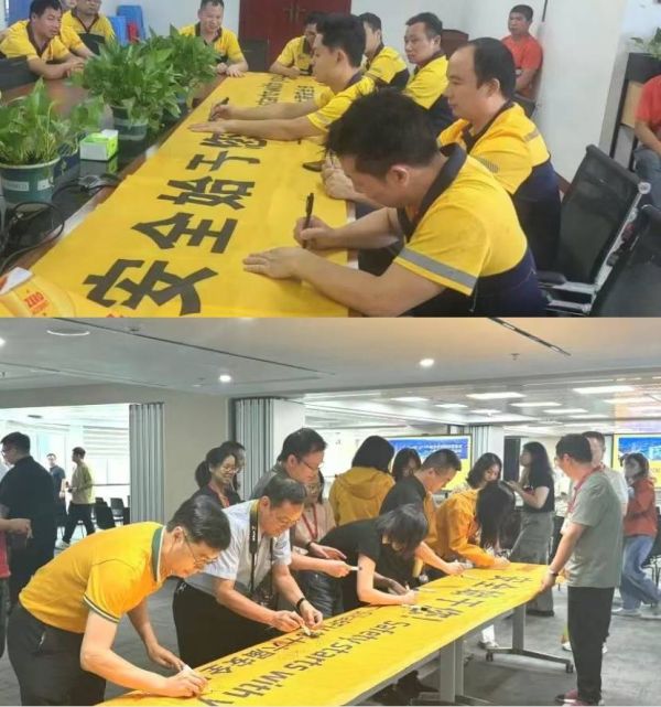 在宣誓环节里,全体与会人员以整齐坚定的声音许下安全承诺,而签满名字的安全横幅及展板也会悬挂于各地办公区域和生产现场的醒目位置,时刻警示员工恪守安全誓言,将安全意识融入日常工作的每一个细节。