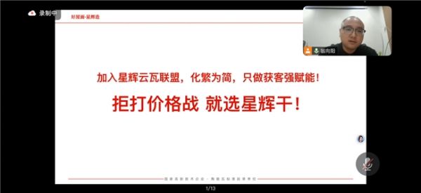 会上,星辉瓦业新媒体总监翁向阳先是通过对首批云瓦联盟试点成果的案例分析和数据展示,让与会人员对“星辉云瓦联盟模式”有了更为全面和深入的认识和了解。