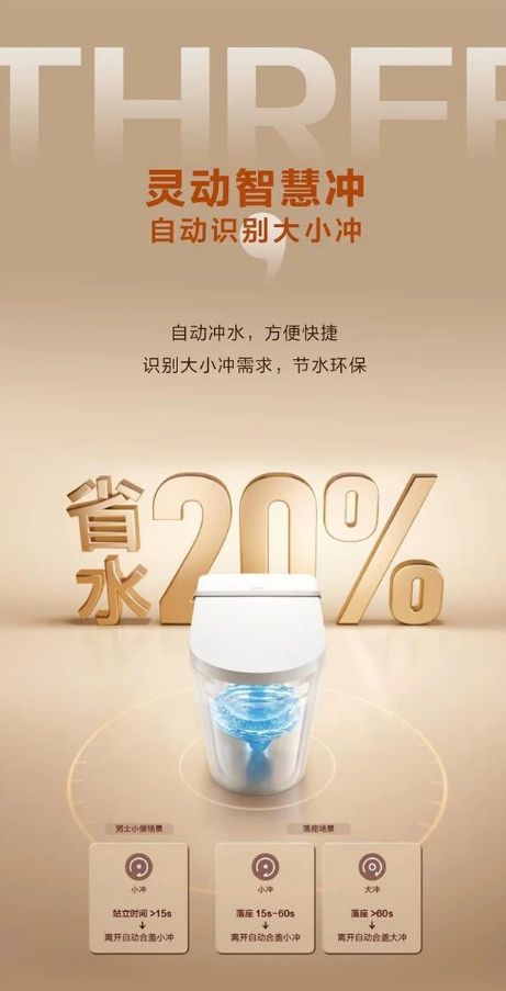 箭牌P2智能马桶将节水性能融入产品的核心设计中,其采用灵动智慧冲系统,能够自动识别大小冲需求,精准分配冲水量,实现“按需用水”,既保证了清洁效果,又大幅降低产品使用阶段的能耗和水耗,避免了水资源浪费。