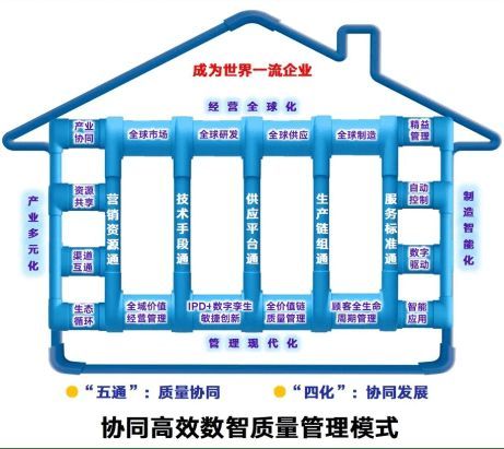 历经39年发展,联塑总结创立了“协同高效数智质量管理模式”,将质量体系要素融入数字信息化系统。并以联塑智能工业互联网平台为基础,实现了智能制造及全业务链条的数字化运营。把“资源、技术、供应链、生产链、服务”五个环节全方位贯通,“五通”取得了全价值链质量管控和产业链质量协同的突破性进步。