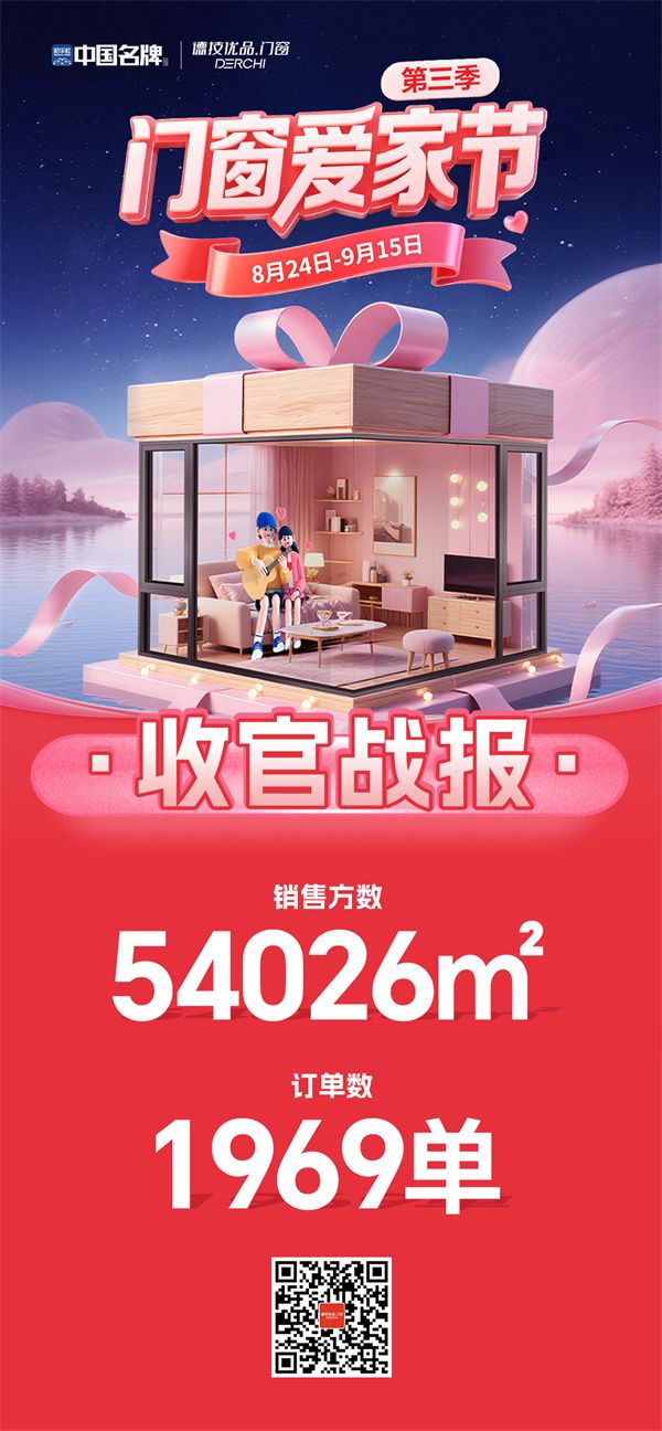 当秋风渐起,满载着家庭对美好生活的向往,中国名牌德技优品门窗爱家节于 9 月 15 日正式落下帷幕。自 8 月 24 日启幕至今,23 天的品质坚守与诚意让利,不仅点燃了全国消费者的门窗焕新热情,更交出了1969 单订单、54026㎡销售方数的亮眼战报 —— 这组数字的背后,是千万家庭对 “中国名牌” 的信任,更是德技优品践行 “为爱定制安全家” 理念的有力印证。