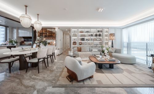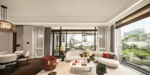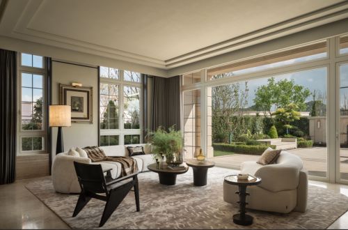 在杭州,绿城家同样以“去样板房”理念,呈现独特墅居生活提案。285㎡轻法式合院以全景落地窗框景如画,客餐厅适度留白,依托绿城家1V1专属设计服务,满足多元生活想象——既可设置圆桌宴请亲朋,也可预留整片童趣天地。
