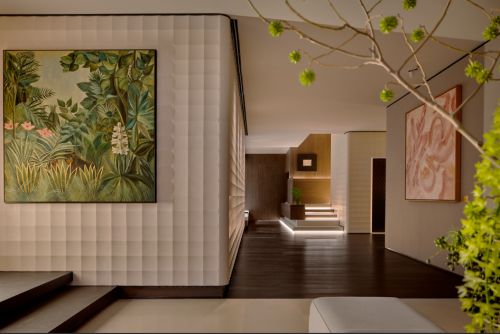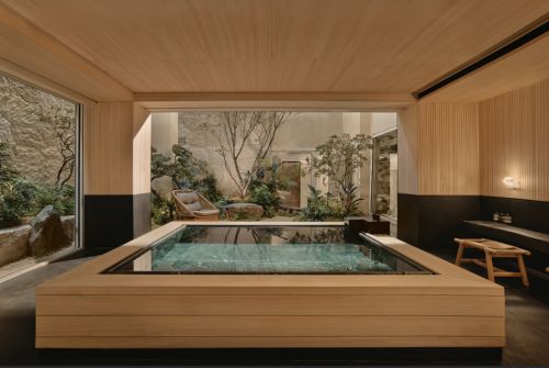 360㎡东方极简合院,则着眼于功能再造与情感疗愈,将地下空间重构,过道化身艺术长廊,自然天光沁入,静谧日式泡池营造疗愈级身心体验。