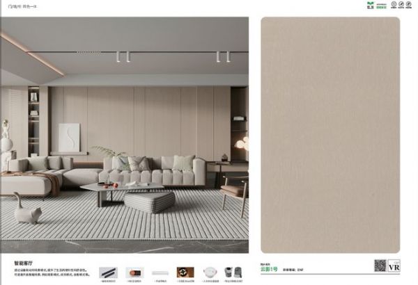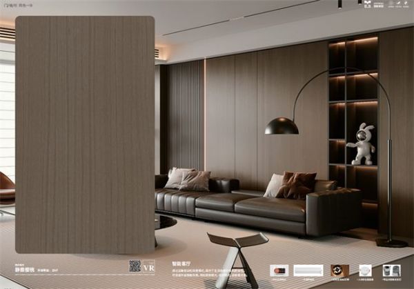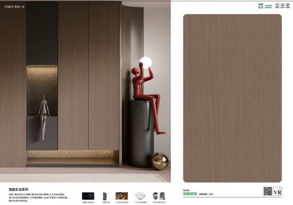 铂雅胡桃、静雅樱桃、云影1号等全系花色跨空间应用,门、墙、柜通过同色系材质碰撞与无缝工艺衔接,实现“隐形的高级感”。护墙板与柜体如自然延伸的画卷,消除传统装修的割裂感,让全屋风格统一协调,每一寸空间都传递“生长式设计”的美学逻辑。