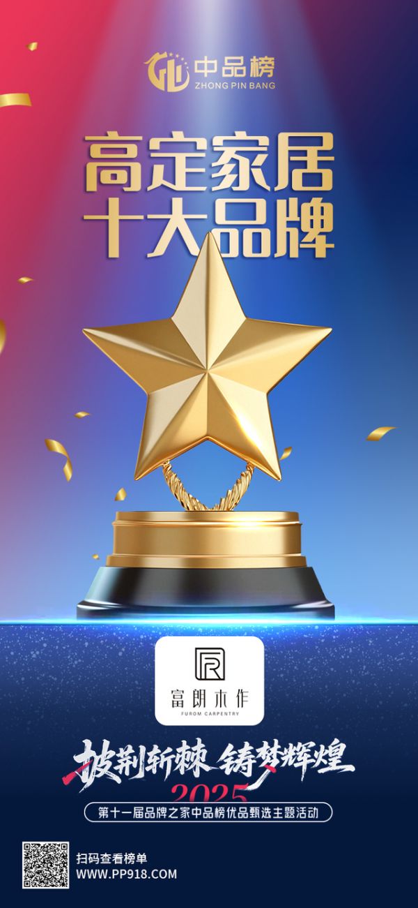 此次荣获中品榜2025高定家居十大品牌的荣誉,既是对富朗木作过往成绩的权威认可,更是对未来发展的期许。在政策支持与消费升级的双重驱动下,富朗将持续深化“设计引领、工艺赋能”战略,以创新为笔、品质为墨,绘就高定家居新画卷,引领行业向品牌化、智能化、绿色化方向迈进。
