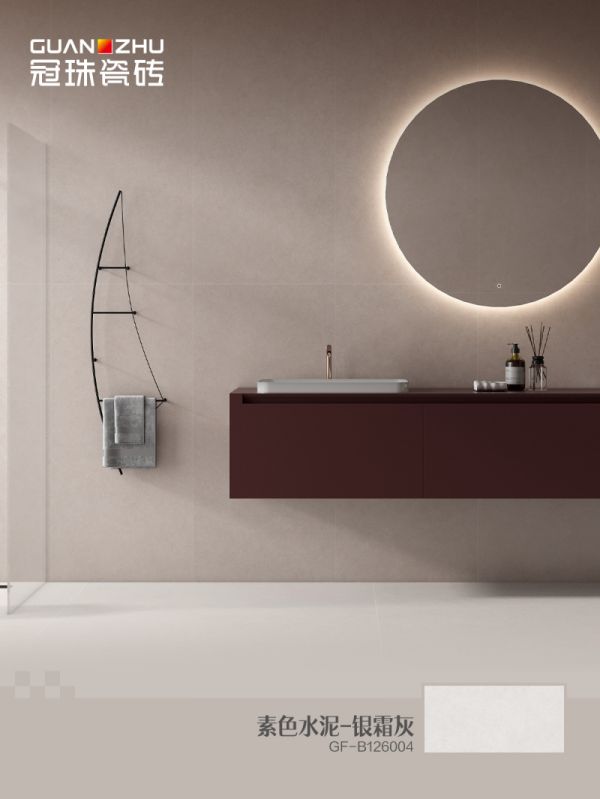 【明星屋主Tips】冠珠素色水泥系列银霜灰,1200X600mm规格铺贴好看性价比也高,冠珠锦鲤节期间到店选购优惠更多哦~