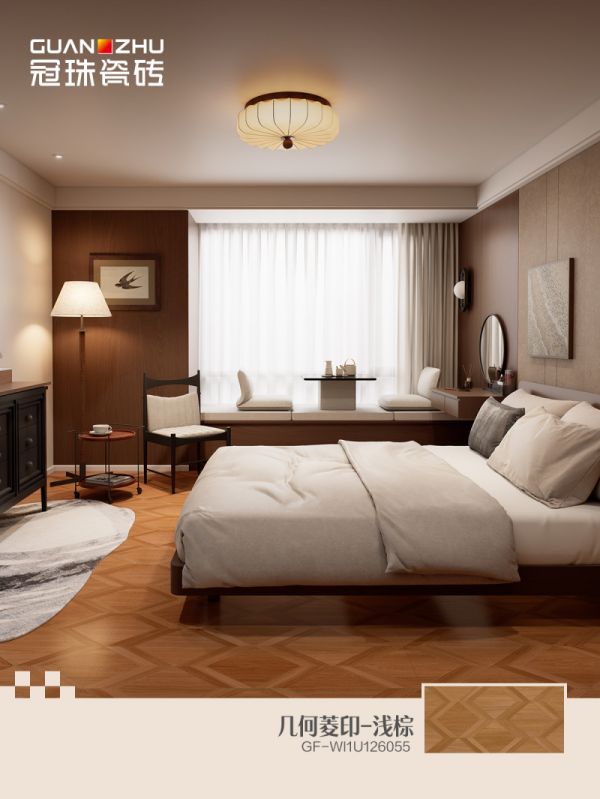 卧室装修主打舒适入睡,木纹砖木质纹理自然细腻,自带温馨氛围感,百搭各种家装风格,防水防污好打理,北方地区装地暖也更实用!