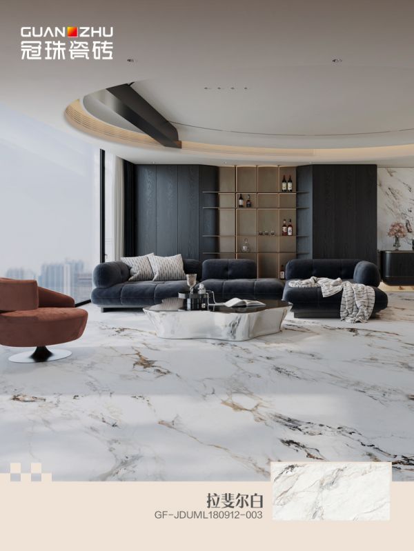 【明星屋主Tips】冠珠观澜系列-拉斐尔白,1800X900mm大规格,一砖六面,任意连纹设计+精密铺贴,铺贴后高级感拉满。
