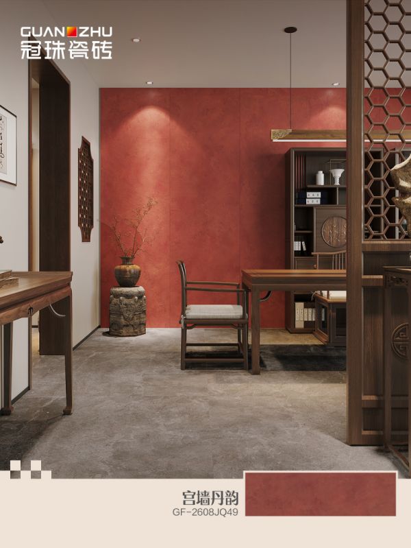 【明星屋主Tips】冠珠华脉「雍华京韵」系列宫墙丹韵,设计灵感源于京城宫墙美学元素,红火丹韵红,铺贴在书房茶室,立马带上东方美学文化雅韵!