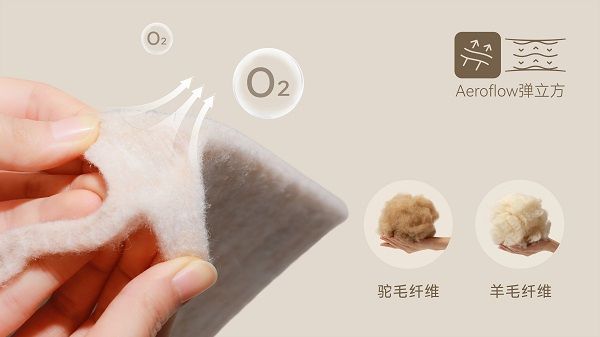 据了解,小金垫床垫是美梦思针对睡眠敏感人群而研发的,从面料、芯材到弹簧、从外观设计到睡感体验,经过了上百次的调试,才最终呈现出来。其中小金垫床垫采用了美梦思自主研发的高性能环保芯材——驼毛Aeroflow弹立方和羊毛Aeroflow弹立方,精选植氧环保纤维为原料,添加天然驼毛和羊毛纤维,通过无醛加工工艺制作而成,并通过特殊机器上下高速针刺定型,因此内部结构如热带雨林般立体交错,且表面呈现出数万个透气微孔,每次翻身都是清爽的体验。
