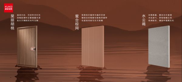 观澜整家系列巧妙运用温润胡桃木作为整体空间基调,深褐肌理中泛着烟墨光泽,搭配取意秋日蜜柿与编织灵感的蜜合棕网,暖棕交织格栅勾勒秩序美学;而水云褐则是在灰调中透出雅韵,奠定古朴基调,整体配色低调内敛,谦逊中蕴藏生机,将传统美学与现代生活理念相融合,展现了东方雅韵的当代魅力,深浅明暗的渐变中诠释东方色彩的诗意与永恒。