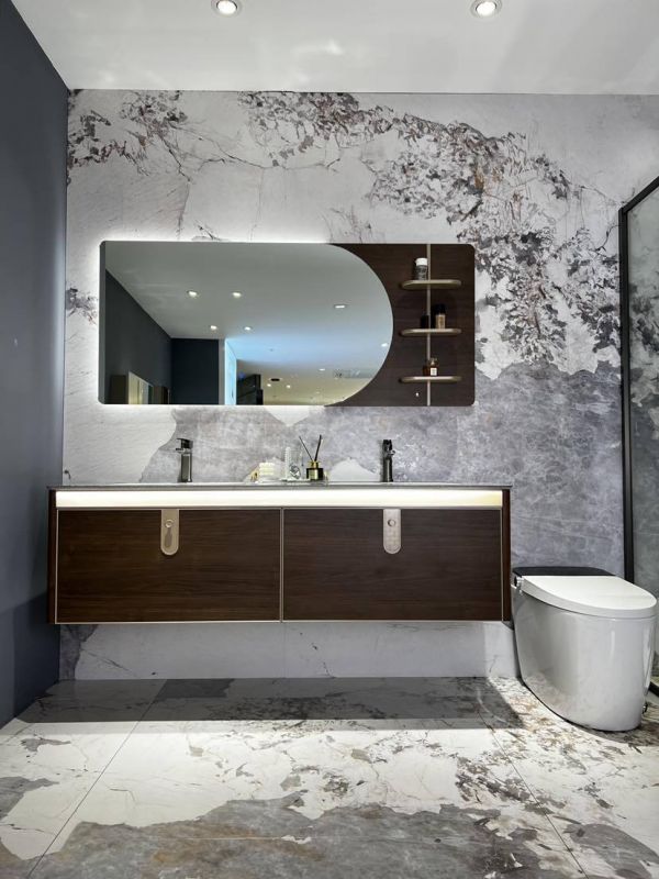 作为拥有 15 年行业积淀、深耕浴室柜领域的标杆品牌,雅浪卫浴本次新品堪称颜值与实力的完美融合,每一处细节都彰显着品牌对品质生活的深刻理解。其中,“风华系列” 以 “时尚与实用的完美融合” 为核心定位,采用环保免漆材质打造柜体,不仅减少有害物质释放,更具备出色的耐磨性与耐刮性,能长久保持外观完好;六边胡桃花色深浅交错,如同自然雕琢的艺术品,可轻松适配现代简约、北欧、轻奢等多种装修风格。搭配的铝合金 + 亚克力置物架轻盈坚固,收纳空间充足,既满足实用需求又成为视觉亮点;骑马抽轨道带来顺滑缓冲的抽拉体验,双控镜面可调节灯光明暗与颜色,而范思哲黑岩板双盆更是硬核加分项 —— 硬度高、耐污易清洁,双盆设计适配多人同时使用场景,实用与质感兼备。