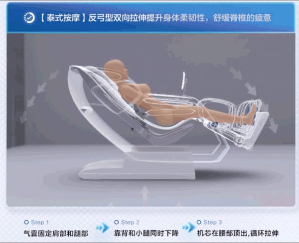 ●反弓型双向拉伸温和牵引脊椎,缓解长期劳累造成的脊柱疲劳
