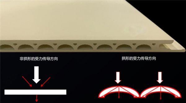 品格孕婴儿童房专用墙板0醛臻木板采用了桥拱空芯结构,根据力学原理,拱形受竖向压力时,能把压力向下和向外传递给相邻部分,因此拱形结构能够比其他类型的结构承受更大的重量。正是这种独特的结构设计,让品格孕婴儿童房专用墙板0醛臻木板具有非常出色的稳定性、抗变形性和抗冲击性,也更加经久耐用。