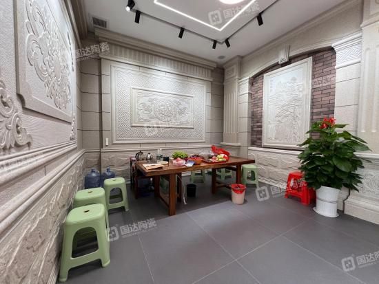 在国达陶瓷贺州旗舰店中,将中式和欧式的外墙产品融入1:1打造的生活场景,用高级的设计手法表现产品,使顾客在感受与触摸产品的同时,能感受到东西方美学带来的视觉震撼,为用户提供更高的购砖体验与情绪价值。