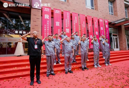 剪彩仪式后,和居π全能装配匠团队的宣誓环节令人动容。“以国家绿色技术赋能家庭焕新,以严苛标准保障施工品质,全心全意为客户提供卓越服务!”铿锵有力的誓言,彰显了团队的专业素养与服务初心。