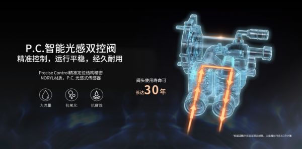 BWS-918搭载了第五代P.C.光感双控阀,这一创新设计不仅确保了水路切换的精准性,还大大提升了设备的抗氧化、抗腐蚀能力,使用寿命长达30年之久。光感技术的应用,使得软水机在运行过程中更加平稳高效,为用户带来了稳定可靠的使用体验。