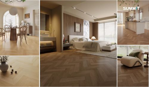 而600×1200mm的鱼骨拼款,将16世纪法国的经典工艺与瓷砖相结合。斜向拼接的纹路不仅拉长空间视觉,更让中古、法式的浪漫在脚下生长。在花色选择上,麦秋的浅金如秋日麦穗轻晃,松棕的暖棕似松树肌理流转,栎褐的棕褐藏着古木的岁月痕迹。在这里,木纹砖成为了让家与森林诗意相拥的媒介,既藏着自然的温度,又有着瓷砖的耐用安心。