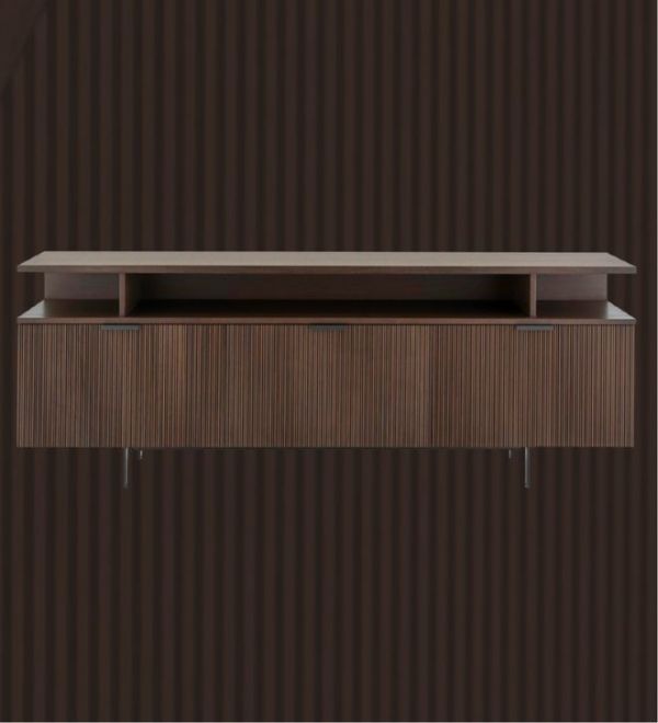 设计师 Christian Werner 在经典 Everywhere 组合柜系列的基因之上,为 Selvans 系列注入了标志性设计语言:其正面与侧面均饰以带凹槽的深胡桃木饰面。这种独特的肌理处理,与温润的岩板瓷形成材质对话,碰撞出兼具自然质感与现代精致的奢华美学。2025年,Selvans系列迎来三位全新成员: 一个边柜,一个展示柜,以及C64储物柜。