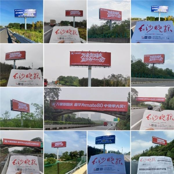万象品牌国庆中秋营销活动全新广告画面,正式亮相湖南高速核心路网。广告以跨线桥、双面立柱为核心传播载体,实现对多条交通干线的全域覆盖,强势抢占高速出行场景视觉焦点。