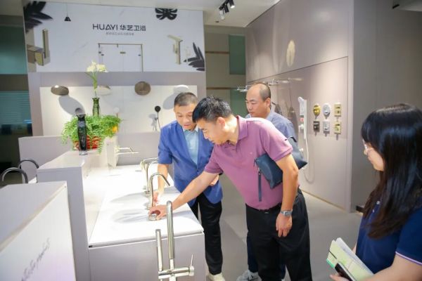 在何总的陪同下,王会长首先参观了华艺卫浴的品牌展厅,全面了解华艺卫浴30多年的企业发展历程、产品矩阵及核心技术。何总介绍,华艺卫浴自成立以来,便秉持对高品质产品的执着追求,深耕技术领域,依托强大的研发实力和创新能力,不断推出引领市场潮流的卫浴新品。王会长对华艺卫浴极具个性化的产品设计给予高度的评价,并赞其“是华夏的艺术之光”。