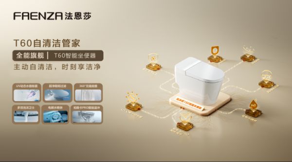 另一款 T60 智能坐便器则升级全链路动态自洁科技,以 “T60 自清洁管家:全域净菌,守护健康” 为核心主张。其自洁覆盖座圈、水路、洗护、水封、内壁、除臭六大核心环节。让洁净渗透使用全场景,以自动防护姿态,让净菌成为 “无感却安心” 的日常,为用户带来全天候的洁净舒适体验。