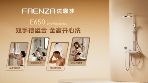 当淋浴空间从基础清洁升级为 “深度疗愈” 与 “全龄共享” 的多元场域,法恩莎精准捕捉这一需求变迁,推出 E650 系列淋浴花洒,直接突破传统花洒的单一场景限制。E650 系列淋浴花洒独特双手持设计,小手持配可调节卡座,儿童易操作:宠物洗澡无需手忙脚乱,硅胶触点理毛、按摩一步到位。顶喷、小手持、背喷、大手持、下出水五功能,全面适配全家沐浴偏好:儿童独立洗,萌宠灵活洗,成人多水路澎湃洗与舒压按摩洗,轻松打造全家开心洗的共享式沐浴解决方案。