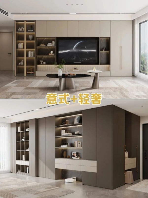 意式流畅简洁的线条与轻奢感的材质相融合。金属拉手、天然石纹背板成为点睛之笔,整体色调沉稳,以卓越的质感凸显出大宅气场。