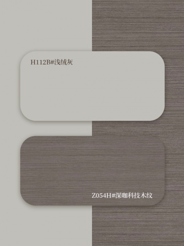 细腻温和的浅绒灰,与强调现代感的深咖科技木纹形成冷暖对比。在交错与平衡之间,尽显摩登都市的时尚气质与理性魅力。