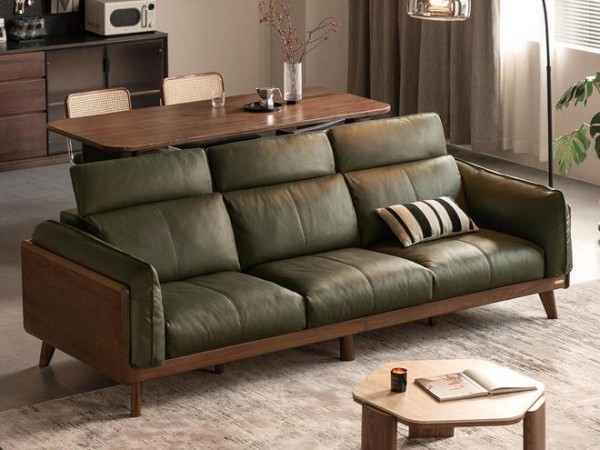 而在客厅空间,山海·功能沙发【黑标】则展现了刚柔并济之美。它巧妙地将实木的温润骨架与真皮的细腻触感相融合,既有意式轻奢的简约线条,又不失东方家居的稳重气度。