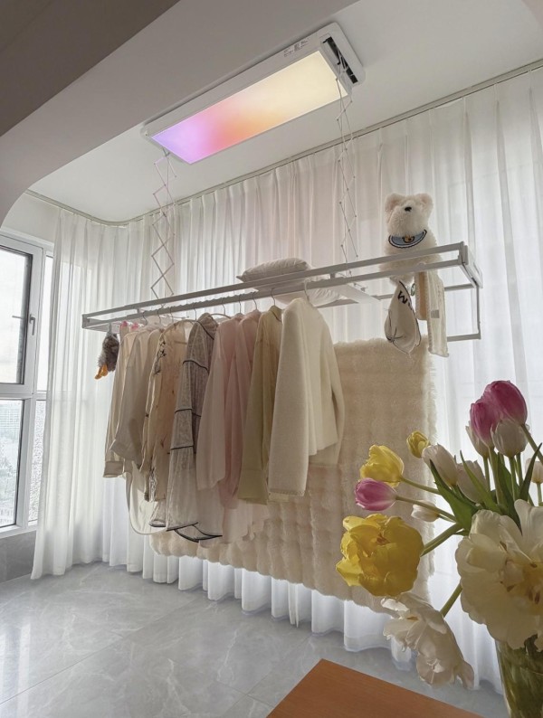 作为智能家居领域的领军者,好太太一直致力于在科技与美学上持续探索与突破,为消费者带来更优质的产品。小天舱光影系列T30以“行业首创炫彩氛围灯智能晾衣机”为定位,精准回应年轻用户对阳台场景的情绪期待。其核心搭载“多态光谱系统”,配备42.5英寸全面屏主灯,突破传统晾衣机单白光局限,提供晴空、落日、微醺、极光四种可切换的氛围光模式,让阳台从单一晾晒空间进阶为可随心定义的情绪角落。产品采用隐翼一体无缝设计,收起时完美贴合吊顶,兼顾颜值与空间利用率;同时具备强劲承重、多杆分区晾晒、可滑动晾被杆等实用功能,满足了年轻用户群体对于功能与情绪价值的双重期待。