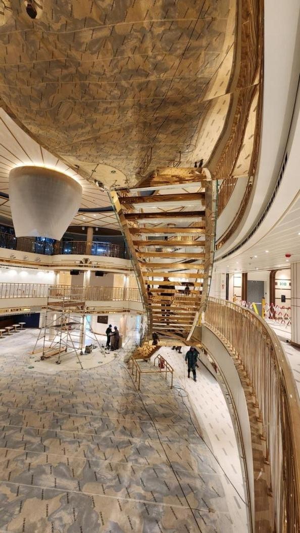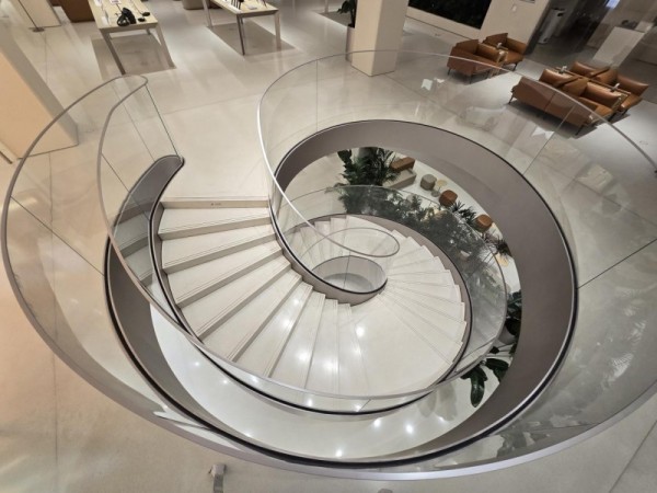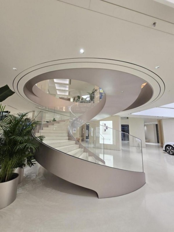 正是这种“自有工厂+自有团队”的模式,让善治楼梯在承接玻璃楼梯、钢结构楼梯等各类项目时游刃有余。例如在中国首艘大型邮轮“爱达魔都号”的楼梯工程中,善治楼梯凭借出色的技术实力完成了多曲面悬挑钢结构楼梯的制作安装;在天津华为旗舰店项目中,团队更是将钢构与玻璃完美融合,打造出极具现代感的悬挑楼梯,赢得了客户的高度赞誉。