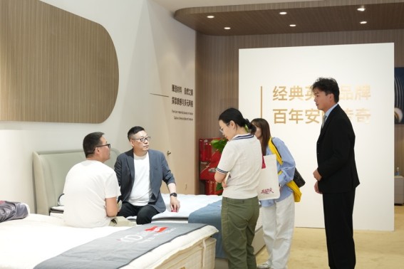 与此同时,此次首次亮相的AI智能床垫成为展会现场关注焦点。该产品融合智能感应技术与睡眠数据监测系统,可针对用户睡眠状态进行实时识别与动态调节,体现了斯林百兰在智能睡眠科技领域的最新探索。凭借创新体验与科技属性,该产品吸引大量观众驻足体验,并获得广泛关注。