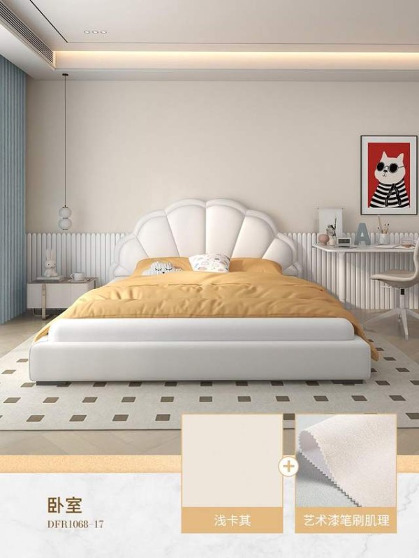 手工感十足的笔刷纹理,搭配暖调浅卡其,在墙面晕出温柔层次,适配奶油风、原木风,让卧室充满治愈的生活温度。