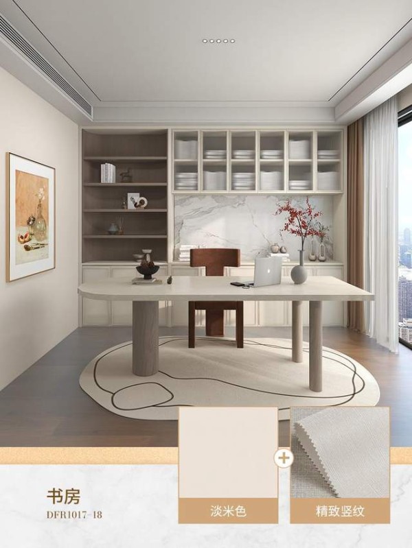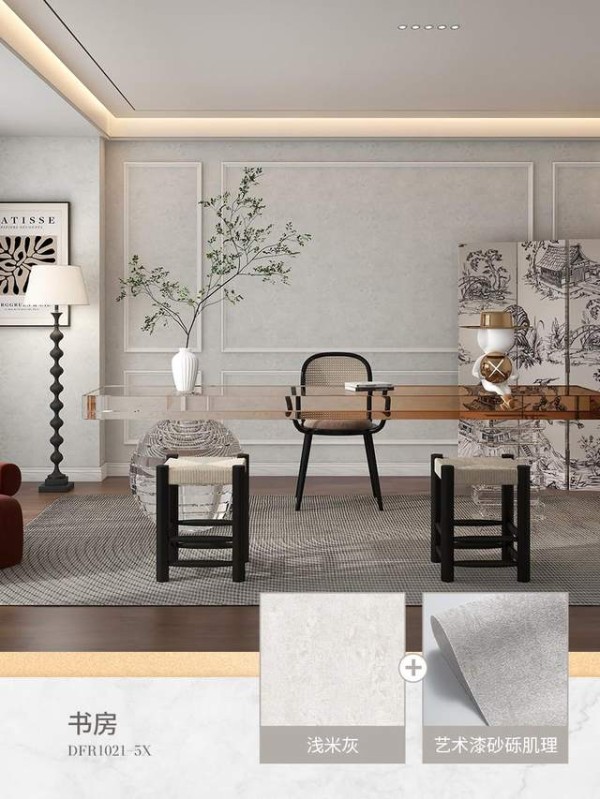 磨砂质感的砂砾肌理,搭配低饱和浅米灰,自带高级哑光质感,适配现代、新中式,让书房成为家的精神自留地。