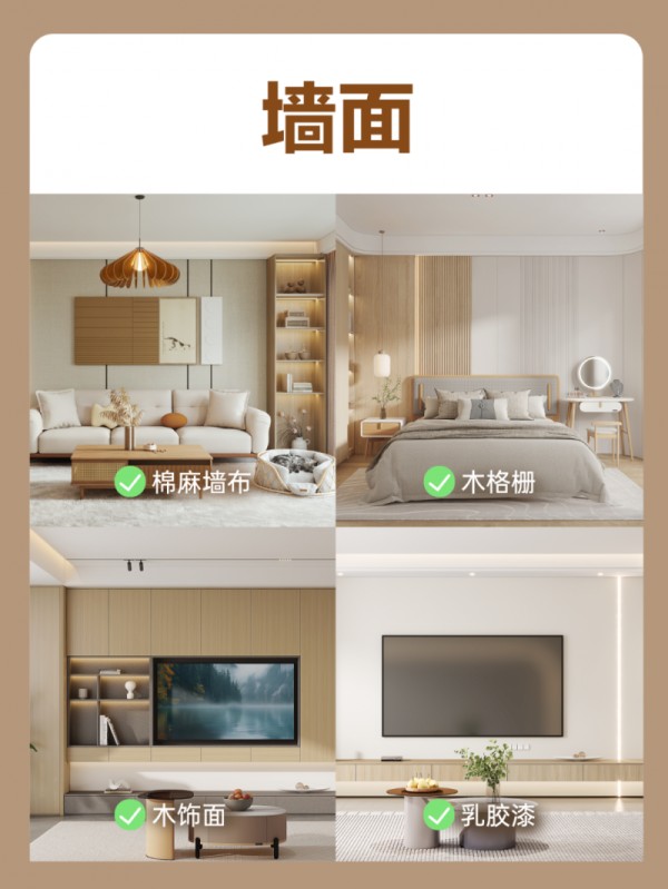 以浅橡木、原木棕等自然木质色为主调,搭配米白、浅灰等低饱和浅色系,轻松拿捏家的温馨氛围,质感直接拉满。