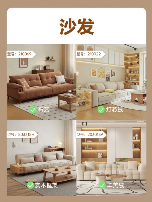 布艺材质透气亲肤,灯芯绒面料复古优雅,羊羔绒触感软糯舒适。再搭配沉稳耐用的实木框架,居家时光更惬意。