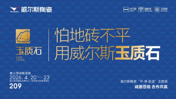正值陶博会开展第二天、潭洲展启幕前夕,一线瓷砖品牌威尔斯陶瓷重磅亮相,以「平・净・生活」核心理念与差异化高端产品矩阵,积极响应展会 “向上卷价值、拒绝低价内卷” 的导向,以设计回归、产品创新、体系成熟三大优势,为行业与渠道伙伴提供可落地、可盈利、可长期发展的品牌方案。